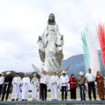 Entregan Américo y María escultura monumental de la Virgen de la Misericordia en El Chorrito