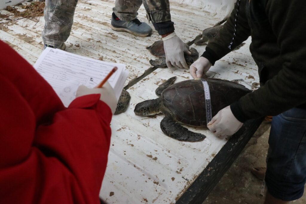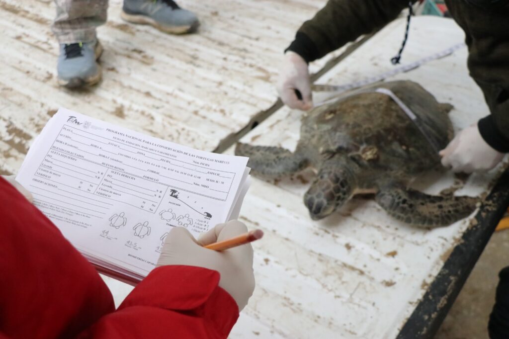 Desde el descenso de las temperaturas provocadas por el frente frío número 35, personal técnico del Centro de Protección y Conservación de Tortugas Marinas, realiza diariamente un recorrido de más de 60 kilómetros por el litoral en busca de ejemplares varadas por hipotermia.