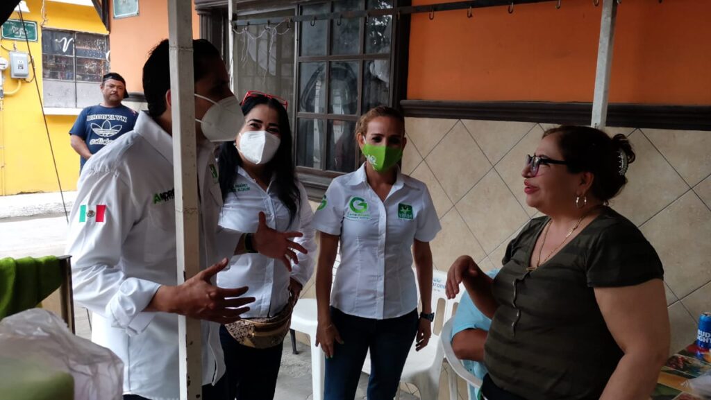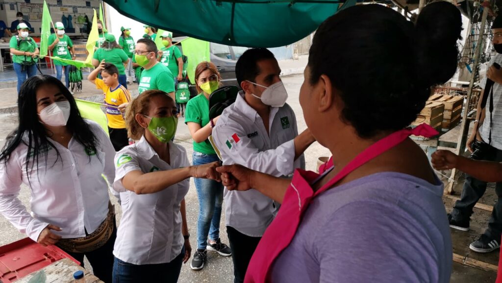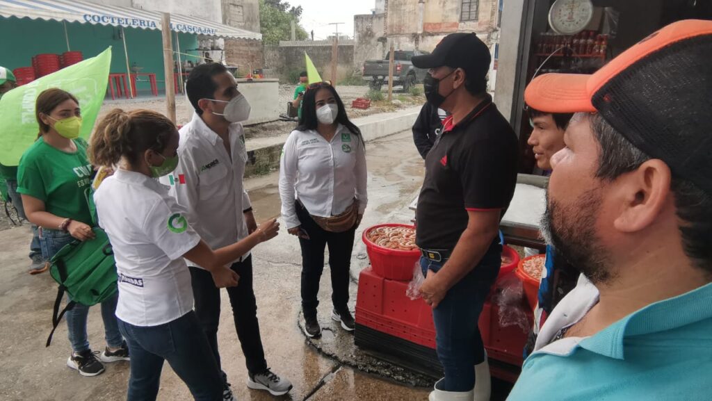 En el contacto con los locatarios la abanderada del Verde Ecologista estuvo acompañada de Andrés Betanzos, candidato a la diputación local por el distrito 22, quien dijo que se hará equipo desde el Congreso del Estado para la gestión de recursos y que estos se apliquen en las necesidades más apremiantes de la ciudad.