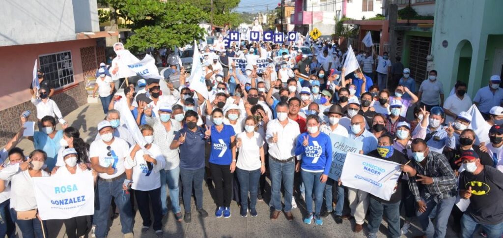 Acompañado de su esposa Aída Féres de Nader y de la candidata a la Diputación Federal por el octavo distrito Rosa González Azcárraga, el abanderado de Acción Nacional aseguró que durante los próximos tres años Tampico seguirá consolidando su desarrollo con más obra pública, mejores servicios públicos; y mayor bienestar para todas las familias.