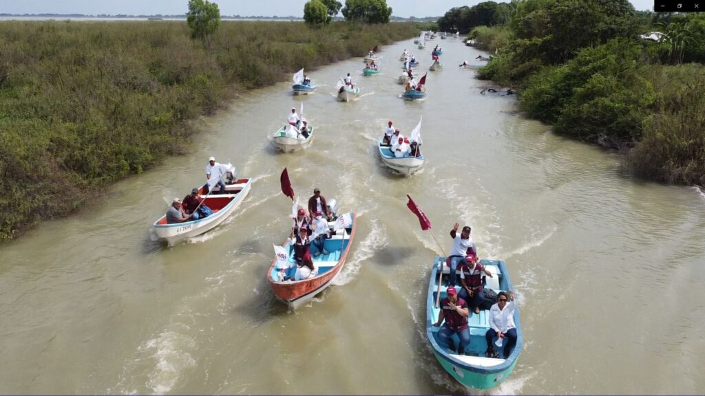 Armando Martínez Manríquez, candidato a la alcaldía por Morena-PT, recorre laguna de Champayán y margen del Tamesí