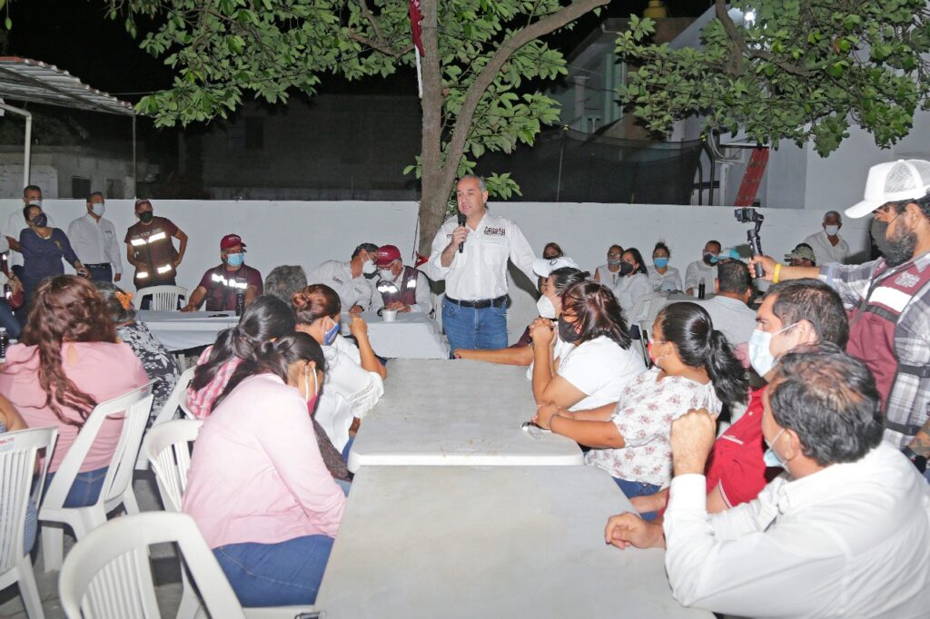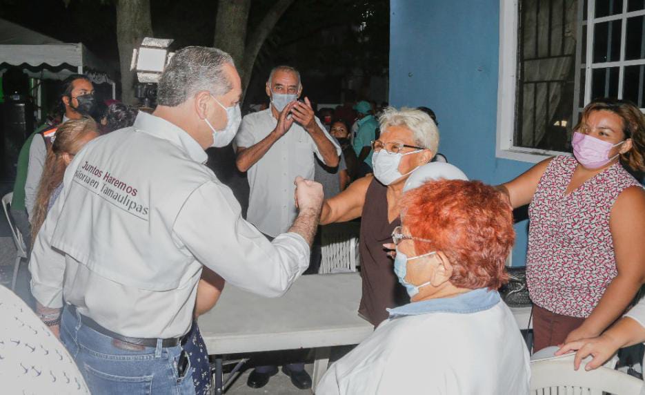 El candidato de la alianza Juntos Haremos Historia en Tamaulipas, se reunió con líderes, simpatizantes y vecinos del sector Benito Juárez en la colonia Lucio Blanco donde estuvo acompañado del aspirante a la Diputación federal por el Distrito 7, Erasmo González Robledo y el ex líder petrolero Chuy Olvera.