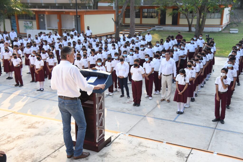 Acompañado de la Diputada Local, Nora Gómez González, el Jefe de la comuna reconoció la calidad académica de maestros y alumnos de esta institución y valoró el apoyo que los padres de familia brindan a sus hijos en su desarrollo formativo.