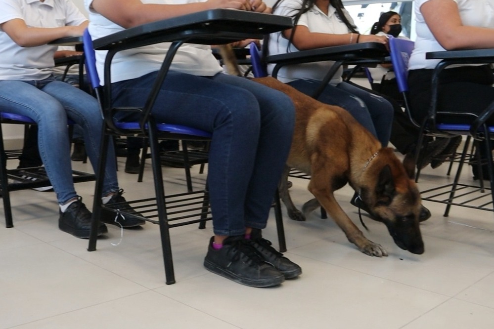 Ciudad Victoria, Tamaulipas. – Entre las acciones realizadas por la Dirección de Agrupamiento Policiales de la Secretaría de Seguridad Pública de Tamaulipas (SSPT), se encuentra el empleo de binomios caninos para realizar inspecciones en centros escolares, con el objetivo de prevenir accidentes o actos delictivos que arriesguen la integridad de las y los estudiantes de la entidad.